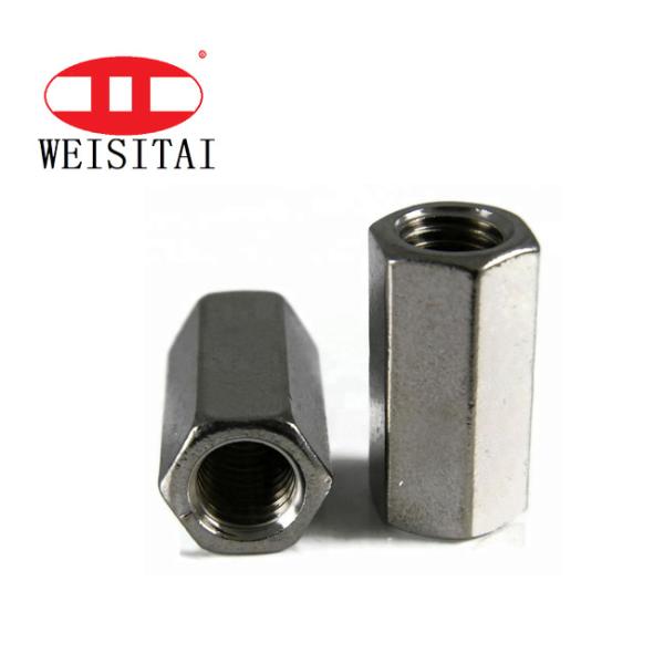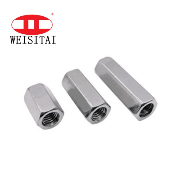 Hex nut is used as normal fasteners together with washer plate; Some times used as steel bar couplers, connecting two bars in the reinforcement work. When used as coupler, usually a stop-pin is fixed in the middle of the nut, in order to secure the screwed length of the bar.